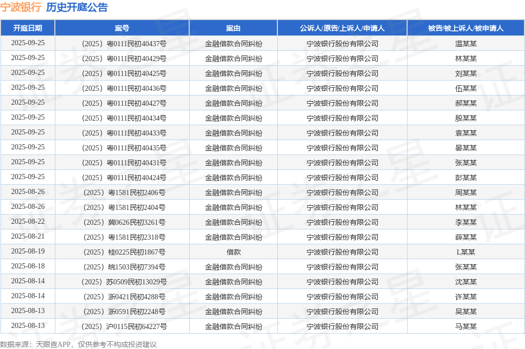 本站消息,根据天眼查APP显示,近日公布了一则宁波银行股份有限公司作为原告/上诉人的开庭公告,详细内容如下: